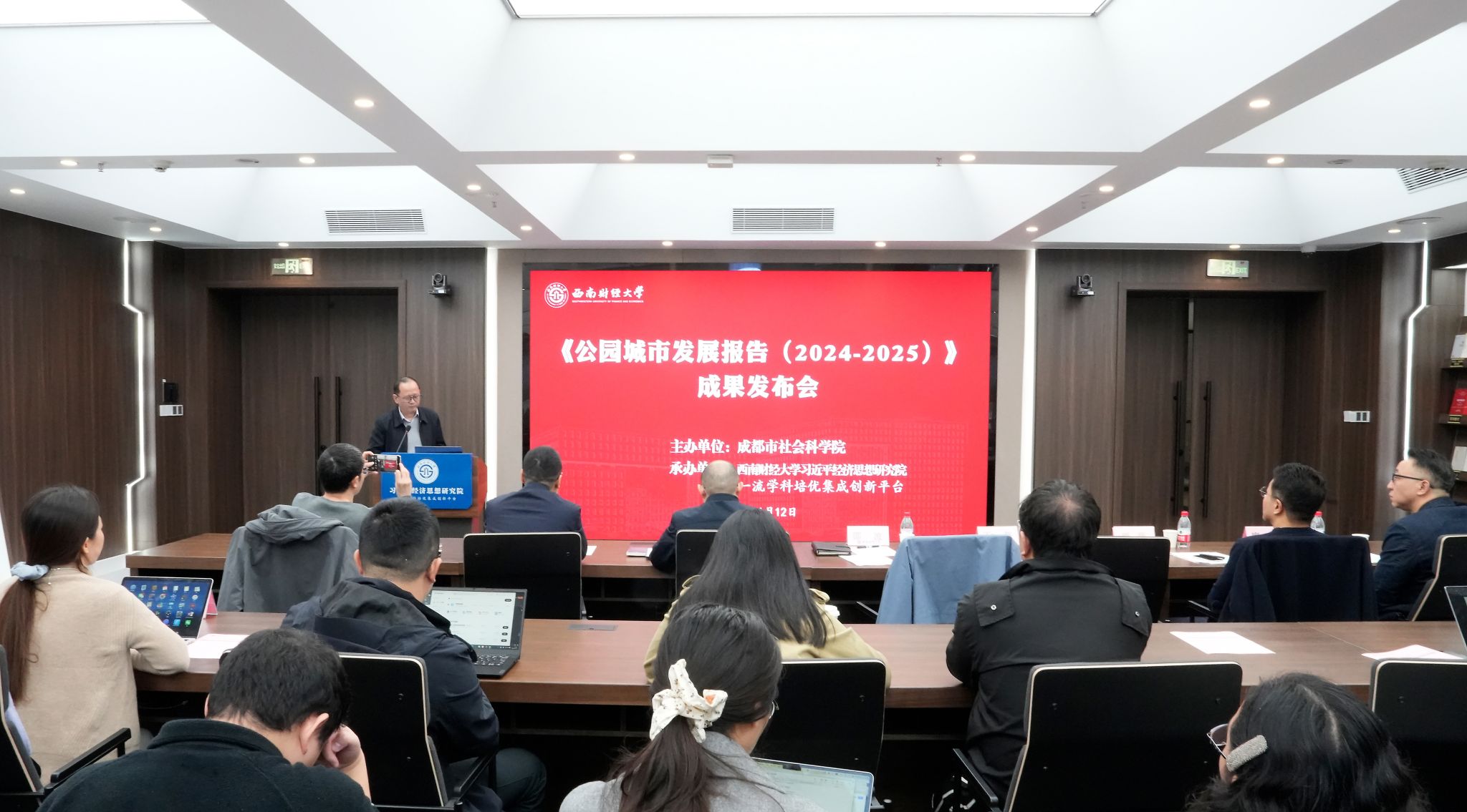 11月12日,由西南财经大学与成都市社会科学院共同举办的《公园城市发展报告(2024-2025)》成果发布会在柳林校区举行。学校党委常委、副校长王擎出席会议,成都市社科联(市社科院)党组书记邵波主持会议,省内外专家学者和媒体代表参会。
